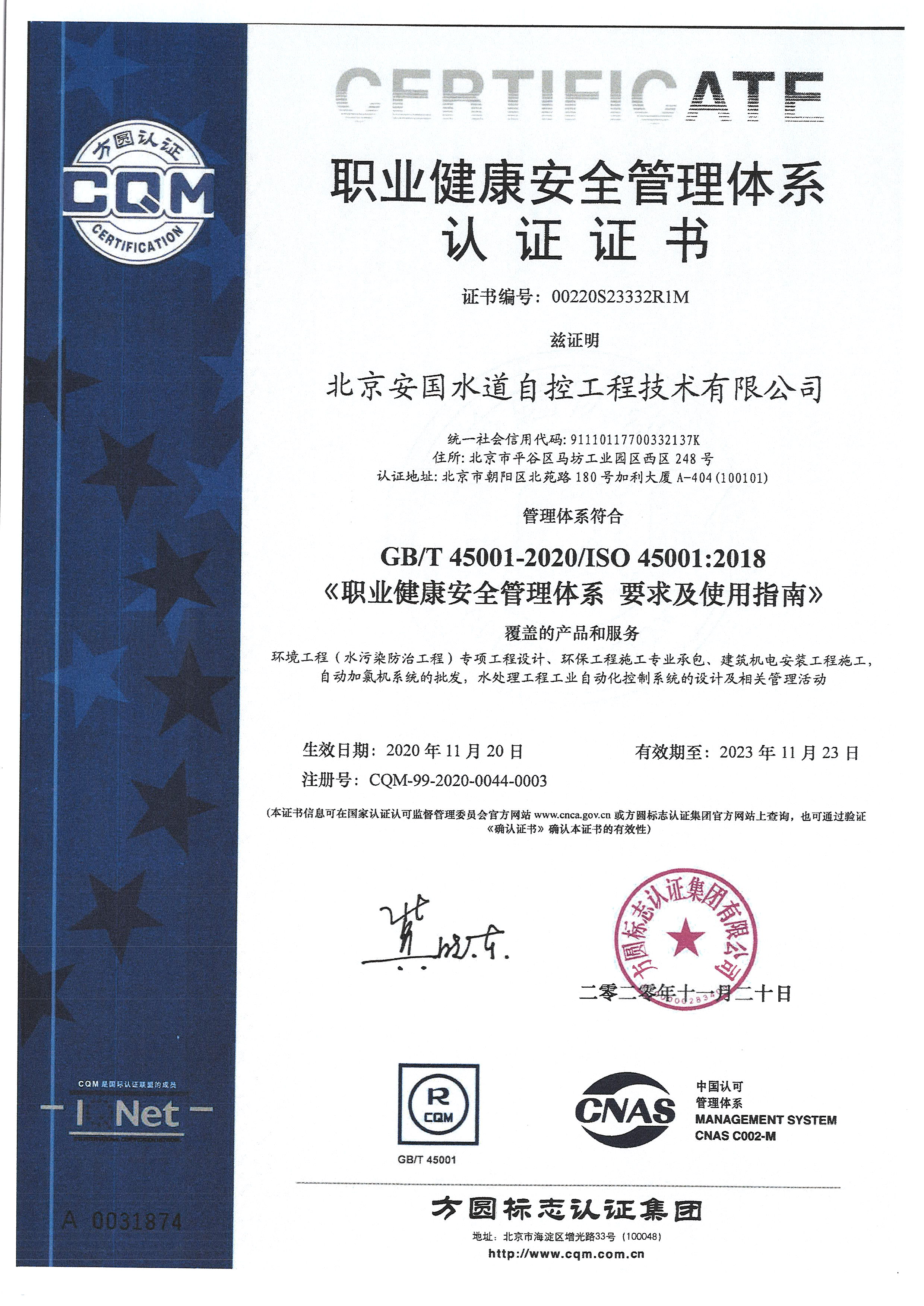 • 北京安國水道自控工程技術有限公司入駐中國給水排水品牌委員會